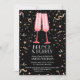 Deux verres de champagne roses sur un arrière - plan de confettis rose et or noir sont parfaits pour un brunch et une douche nuptiale à bulles mariage. CORRESPONDRE des articles dans notre magasin.