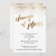 Si vous devez informer votre tribu d'une date de mariage mise à jour, ce design festif pourrait être exactement ce que vous recherchez ! Dans ce design, la police de caractères manuscrite a été utilisée pour créer un graphique qui indique "changement de plans", en gros caractères gras ; l'image a été embellie avec un effet doré métallisé. Le haut des deux côtés a été accentué avec une image qui simule des confettis dorés assortis qui semblent tomber d'en haut. Utilisez les champs du modèle pour ajouter vos détails personnels et faire de ce design unique et moderne, le vôtre. L'arrière-plan peut être changé en n'importe quelle couleur de votre choix. // 100 //