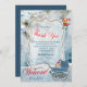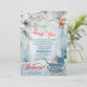 Un Turquoise-vert clair bleu neige scène hiver jouets arrière - plans et un pram avec l'option de remplacer le texte typographique quand c'est un garçon pour remercier vos amis avec cette carte
