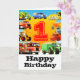 Neuf camions colorés amusants entourent un grand nombre 1! Ajoutez votre âge ! Un mélangeur de ciment, bulldozer, camion à benne, tracteur vert et remorque, camion de pompier rouge, pelle jaune ! Toutes sortes de véhicules de construction pour enfants ! Parfait pour votre camion de pompier, creveur, camion ou tracteur fou 1 an bébé garçon à son 1er anniversaire. Merveilleux pour la fête d'anniversaire à thème du camion de votre fils ou petit-fils de 1an. ©Paul Stickland