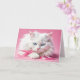 Joli chat blanc aux yeux bleus et rubans roses pour son anniversaire. Le texte est modifiable.