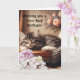 Carte parfaite pour un amoureux des chats. Un chaton endormi posé sur une valise avec des fleurs tout autour d'elle. Elle rêve du jour d'anniversaire pur et simple !