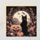 Voici une carte d'Halloween cool avec un chat noir et une citrouille. Le design est dans les couleurs d'automne avec des feuilles orange et noires et des chauves-souris. C'est une excellente carte d'Halloween et est parfaite pour les salutations de la saison effrayante, les invitations ou pour accompagner un cadeau.