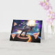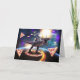Carte Chat équitation dinosaure licorne dans l'espace