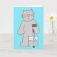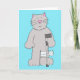 Une bande dessinée, grand chat pelucheux sur une béquille avec un genou bandé. L'image a un arrière - plan de turquoise.
