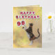 Carte Chat joueuse et 98e Ballons d'anniversaire heureux