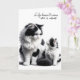 Un chaton noir et blanc moelleux et sa mère s'assoient ensemble sur un arrière - plan neutre pour la fête des mères. Le texte intérieur n'est modifiable que.