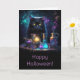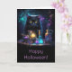 Carte Chat noir d'Halloween avec potions magiques mystiq