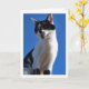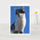 Chat noir et blanc, Carte de voeux Ciel Bleu. Vous pouvez facilement customiser ce produit gratuitement si vous souhaitez ajouter un libellé ou changer la couleur de l'arrière - plan.