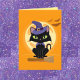 Carte Chat noir mignon sur balaiCarte d'Halloween