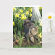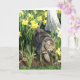 Animal de nature et photographie florale, d'un chat et des fleurs de jonquille, équipes avec une salutation d'anniversaire pour cette carte.