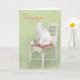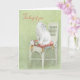 Chat blanc et rose sur chaise coussin avec des tasselles d'or pour penser à vous
