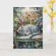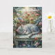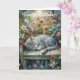Un chat courbé sur un banc dans un jardin fleuri. Convient pour une carte d'anniversaire pour n'importe qui. N'hésitez pas à modifier le texte