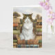Un charmant tabby est assis avec bonheur sur des piles de livres anciens. Les chats et les livres semblent aller de pair. Lorsque vous lisez, ils viennent s'asseoir sur votre livre, ou pensez aux chats de bibliothèque et de librairie. Une carte parfaite pour l'amateur de livres anciens et la mère de chat.