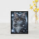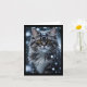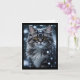 Carte Chat tigré gris sur fond blanc enneigé