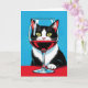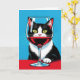Carte Chat Tuxedo Anniversaire à travers le verre de vin