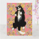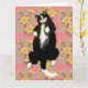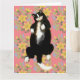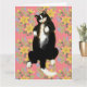 Carte Chat Tuxedo endormi sur un lit fleuri