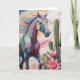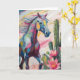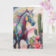 Un tableau abstrait moderne et vibrant représentant un cheval entouré de cactus et de succulents aux couleurs pastel douces. Le cheval est rendu avec des éclaboussures de couleur audacieuse, tandis que les plantes du désert sont peints avec un mélange de vert muet, de rose et de bleu. La fusion de formes organiques et de teintes vives crée une composition ludique mais apaisante, mêlant éléments naturels et atmosphère artistique contemporaine.