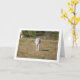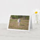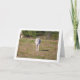 Cheval blanc dans la carte de voeux de terrain. Vous pouvez facilement customiser ce produit gratuitement si vous souhaitez ajouter un libellé ou changer la couleur de l'arrière - plan.