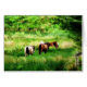 Des poneys gallois broutent dans une prairie estivale. Aquarelle.