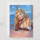 Voici une beauté blonde aux yeux bleus qui vous souhaite Joyeux Noël ! Elle a un chapeau santa sur le pied ! Et un grand sourire sur son visage.