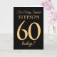 Une carte d'anniversaire chic 60e pour un "Very Special Stepson", avec un numéro 60 composé de numéros à effet or et le mot "Stepson", à effet or, sur un arrière - plan noir. Le message intérieur, que vous pouvez modifier si vous le souhaitez, est "Joyeux anniversaire"