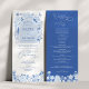Élégant programme de mariage bleu et blanc avec motif botanique floral de la Chinoiserie