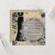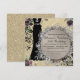 Une robe noire chic sur un fond doré glittery aux fleurs violettes et aux tourbillons décoratifs, associée à un cercle glissant aux fleurs argentées, où vous pourrez customiser votre événement. Élégance élégante de la poule.
