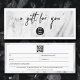 Un beau chèque cadeau d'entreprise en marbre blanc moderne et chic avec un script chic, code QR et logo d'entreprise. Cette conception minimaliste de certificat cadeau est idéale pour tous les types d'entreprises. Customisez simplement et faites-le vous-même.