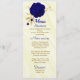 belles fleurs royales bleues et or feuille élégant menu de mariage.