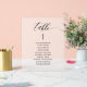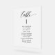 Aidez vos invités à trouver leur table avec ces élégantes cartes modernes de plan de sièges en acrylique avec le nom des invités. Design avec de beaux détails de calligraphie moderne gracieux. Utilisez le modèle pour remplir votre numéro de table et vos noms d'invités et les ajouter un par un à vos achats jusqu'à ce que vous ayez rempli toutes vos cartes de table, puis passez au paiement. Vous pouvez modifier cette conception à l'aide de l'outil de conception et modifier la taille de police du texte, le style de police et même le positionnement de la ligne de texte. 8" x 10" est seulement notre taille par défaut, le panneau est disponible en plusieurs tailles. Style élégant, simple et propre. Zazzle exige que chaque client remplisse chaque panneau avec ses détails. Aucune option n'est disponible pour recevoir les listes d'invités et les panneaux de remplissage. "REMARQUE IMPORTANTE : signer dans une feuille acrylique de haute qualité avec le texte imprimé en noir et un faux look dépoli derrière, fournir une vue claire du texte dans tous les espaces, et vous donner l'appel gelé pour une fraction du coût! Les petites tailles sont livrées avec un bloc de bois pour tenir, les plus grandes tailles ont besoin d'un chevalet ou d'une surface pour se tenir afin qu'elles ne se déchaîne pas. Cette même conception de panneau est également disponible dans l'option de cartes papier, que vous pouvez trouver dans notre collection". Une partie de notre collection "Modern Elegant Wedding and Events Signage" avec de nombreux produits de coordination disponibles.