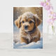 Chien chiot mignon dehors sur une carte de Noël personnalisée et enneigée nuit.