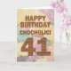 Une carte de plaisir pour les amateurs de chocolat. L'écriture est faite à partir de barres chocolatées!. Une belle carte d'anniversaire pour toute femme.