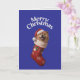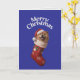 Un Chow Chow portant un chapeau de Père Noël sort d'un empilement de Noël.