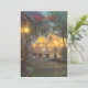 Un cadre de rue charmant avec des lampes brillantes et des boutiques décorées, doucement éclairé par la brume du soir, créant une atmosphère chaleureuse et accueillante.