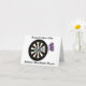 Un tableau de fléchettes avec trois fléchettes dans le bullseye. Les fléchettes ont des vols Union Jack. Idéal pour tous les fans de fléchettes ! La carte indique : Bonne Fête des pères Meilleur Joueur des fléchettes en Grande-Bretagne. La carte à l'intérieur dit : Bonne Fête des pères