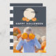 Souhaitez à vos amis et à votre famille un Happy Halloween - et partagez une photo préférée - avec notre Citrouille Patch carte photo moderne. Design présente un arrière - plan bleu nuit fumé avec une pleine lune se levant sur un patch citrouille rempli de citrouilles oranges vibrantes, et "Happy Halloween" en dessous de lettres blanches audacieuses et modernes. Personnalisez avec votre salutation ou message personnalisé et l'année.