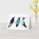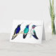 Carte d'aquarelle peinte à la main pour les amateurs d'oiseaux avec trois espèces de colibris, un colibri Coronet, un colibri à bec large et un colibri à bec long.