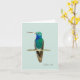 Carte pour toutes occasions représentant un colibri à gorge bleue peint à la gouache. L'intérieur est laissé vide pour votre propre message manuscrit.