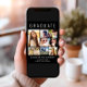 Elégant faire-part moderne de graduation noire pour célébrer le diplômé avec "GRADUATE" en haut dans la grande typographie blanche, un collage de sept photos et son nom, année de classe et l'école dans la typographie blanche moderne. Au verso, ajoutez une photo supplémentaire et un message personnalisé.