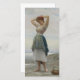 Ce dessin présente un tableau de l'artiste italien Eugene de Blaas (1843-1931). Elle montre une femme qui ramasse des cailloux, des coquillages et des pierres sur une plage de sable en Italie. La femme porte une robe simple et elle est pieds nus alors qu'elle marche le long du sable. Elle réorganise ses cheveux. Sa posture montre son élégance et sa beauté simples. Une corbeille de petits galets se trouve à côté de ses pieds nus. L'art original a été peint en 1908.