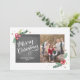 Ajoutez une touche festive supplémentaire à vos salutations de vacances avec ce 1 carte photo, avec des illustrations de calligraphie en lettres et des feuillages dessinés à la main, le tout sur un arrière - plan en damier branché.