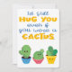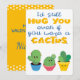 Cette carte de voeux colorée présente trois cactus de dessin animé amusants sur un arrière - plan blanc. La légende, en bleu calligraphie et toutes les polices jaunes casquettes, dit que je vous serrais encore dans mes bras même si vous étiez un cactus. Le dos de la carte est jaune, avec des bordures pois, et est entièrement personnalisable avec vos salutations et nom.