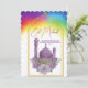 Envoyez des vœux de fête d'Eid joyeux avec cette carte magnifiquement conçue, représentant une mosquée violette saisissante ornée de délicates fleurs aquarelles. Le cadre en arche dorée et le fond arc-en-ciel vibrant ajoutent une atmosphère festive et joyeuse, ce qui la rend parfaite pour célébrer l'Aïd el-Fitr ou l'Aïd al-Adha. Idéale pour les familles, les amis et les proches, cette carte capture l'essence de la joie, de la foi et de la beauté lors de cette occasion islamique spéciale.