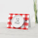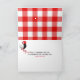 Commande humoristique Alexa sur plaque blanche avec argenterie sur arrière - plan en plaid rouge et blanc pour l'anniversaire.