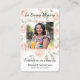 Célébrez la mémoire d'un être aimé avec cette carte de mémorial fleuri magnifiquement conçue. Doté d'une bordure douce et élégante de fleurs délicates, l'avant met en valeur une photo chère ainsi que le nom et les dates de vie, créant un souvenir chaleureux pour la famille et les amis. L'envers offre de l'espace pour un poème touchant, une prière ou un message de souvenir, offrant des mots de réconfort et de réflexion. Parfait pour les services commémoratifs, les funérailles, ou comme souvenir durable, cette carte allie chaleur et élégance, aidant à honorer une vie bien vécue avec dignité et amour.