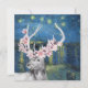 Une belle compilation artistique présente la nuit étoilée de Van Gogh sur le Rhône comme arrière - plan avec portrait de cerf de cerf de belle couleur aquarelle sur la couronne fleurie.