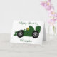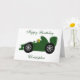 Carte d'anniversaire avec un design de voiture de course verte que vous pouvez customiser avec n'importe quel texte de votre choix. Si vous avez besoin d'aide pour vous customiser, contactez-nous via le lien de cette page. Carte d'anniversaire de voiture de course