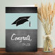 Congrats Modernes Chalkboard Graduation Card avec un nom de diplômé. Carte de diplôme avec capuchon de diplôme, texte de typographie blanche moderne Félicitations et un nom du diplômé sur le côté avant - personnalisez avec votre nom. Le texte est sur un arrière - plan de tableau noir gris moderne et le casquette est sur bleu. Personnalisez le texte à l'intérieur de la carte pour répondre à vos besoins.