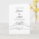 This adorable black and white engagement card features heart hands and can be personalized with the couple's names and a special message inside. To customize, simply click 'personalize this design' and enter your details, and Zazzle will do the rest.